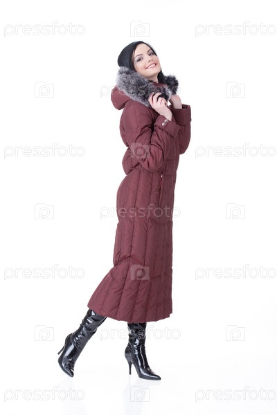 Молодая привлекательная женщина в модной одежде на изолированном фоне