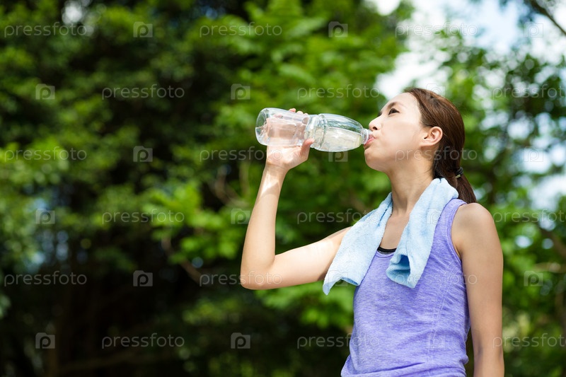 Молодая спортсменка с питьевой водой
