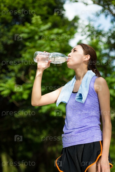 Молодая спортсменка с питьевой водой