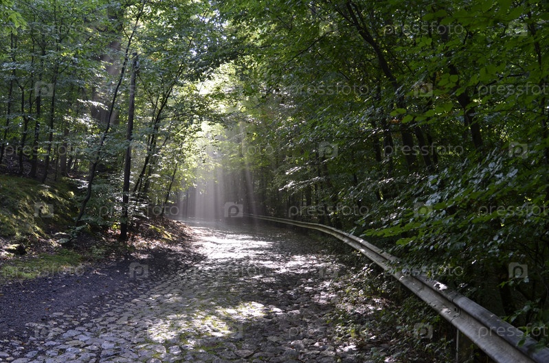 Лесная дорога с лучами солнца