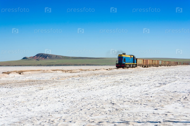 Поезд подъезжает к озеру Баскунчак