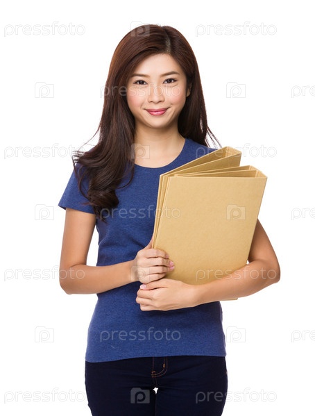 Молодая женщина с офисными папками