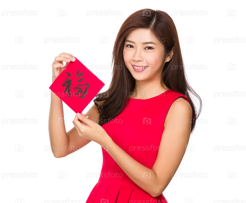 Симпатичная китаянка показывает иероглифы