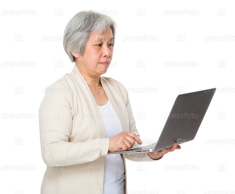 Пожилая женщина с ноутбуком