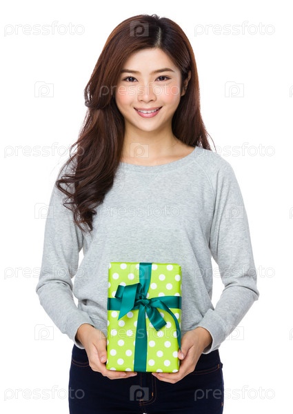 Красивая девушка с подарком в руках
