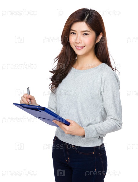Девушка с папкой-планшетом