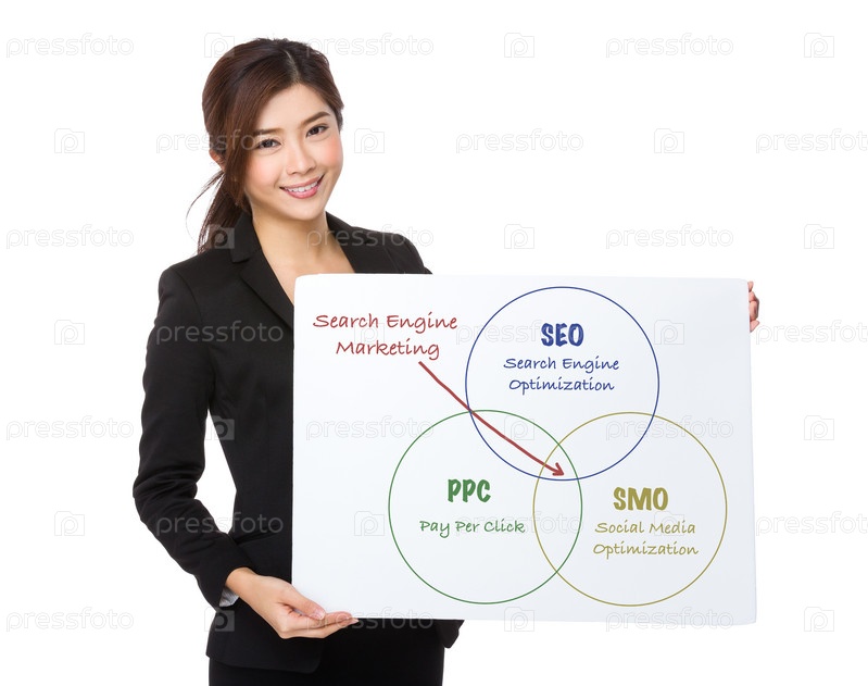 Деловая женщина показывает плакат