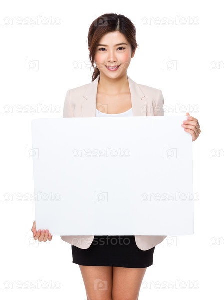Деловая женщина показывает плакат