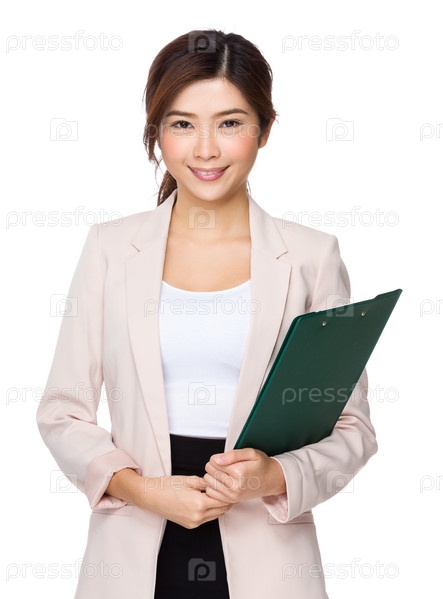 Бизнес-леди с папкой-планшетом