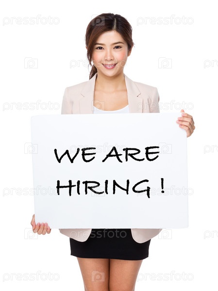 Деловая женщина показывает плакат