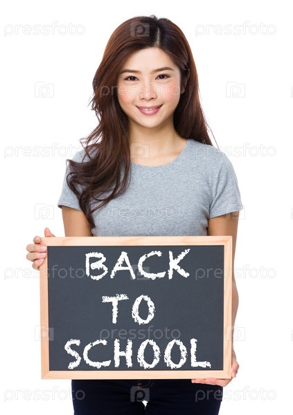 Студентка показывает надпись на доске