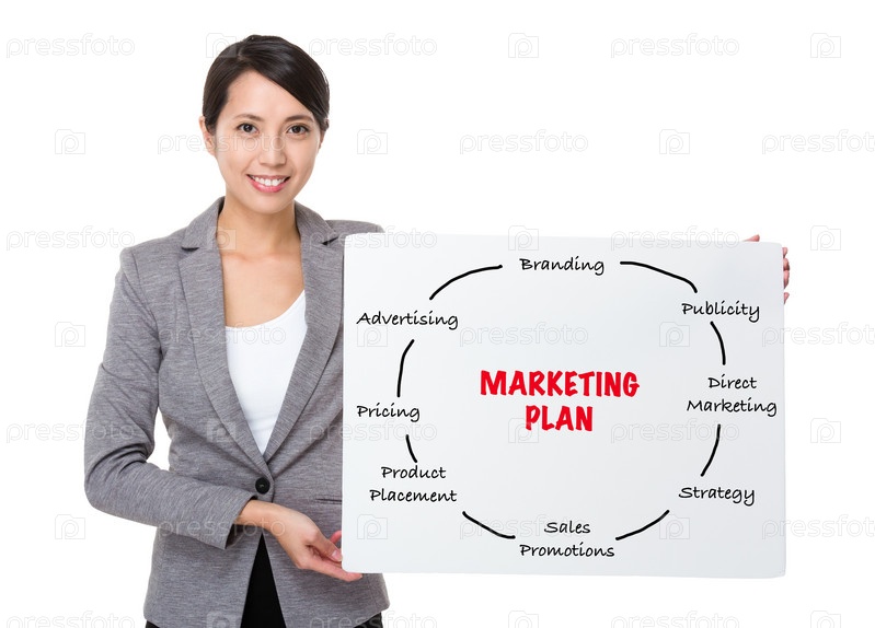 Деловая женщина показывает плакат