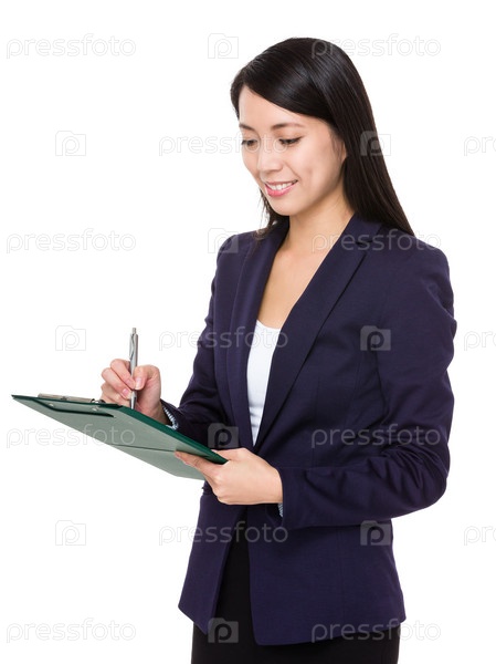 Деловая женщина с папкой-планшетом