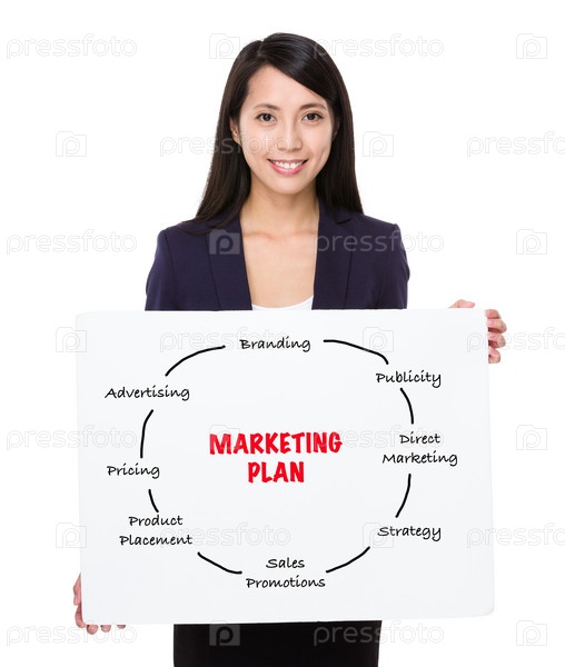 Деловая женщина показывает плакат