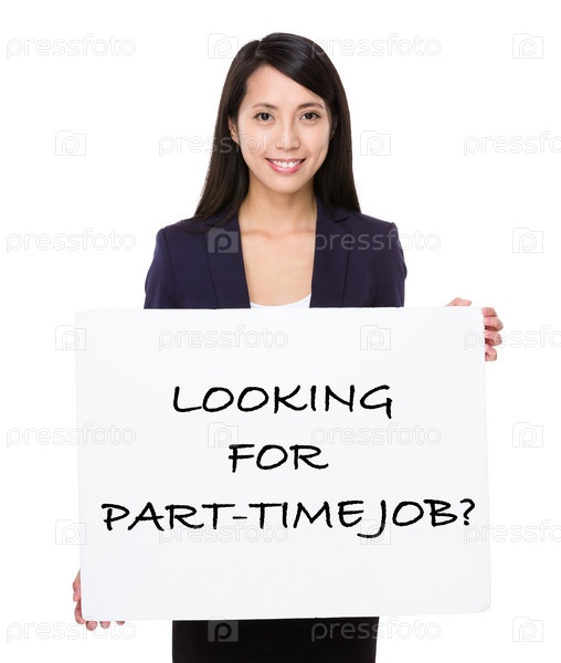 Деловая женщина показывает плакат