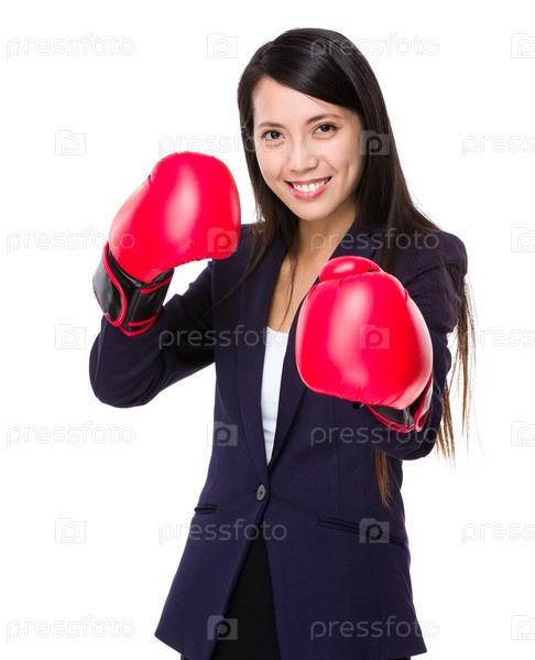 Деловая женщина в боксерских перчатках