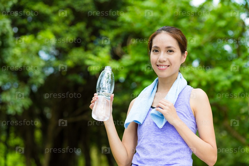 Девушка с бутылкой питьевой воды