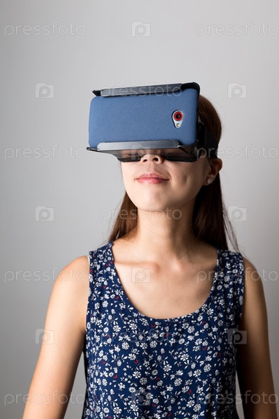 Девушка наслаждается виртуальной реальностью