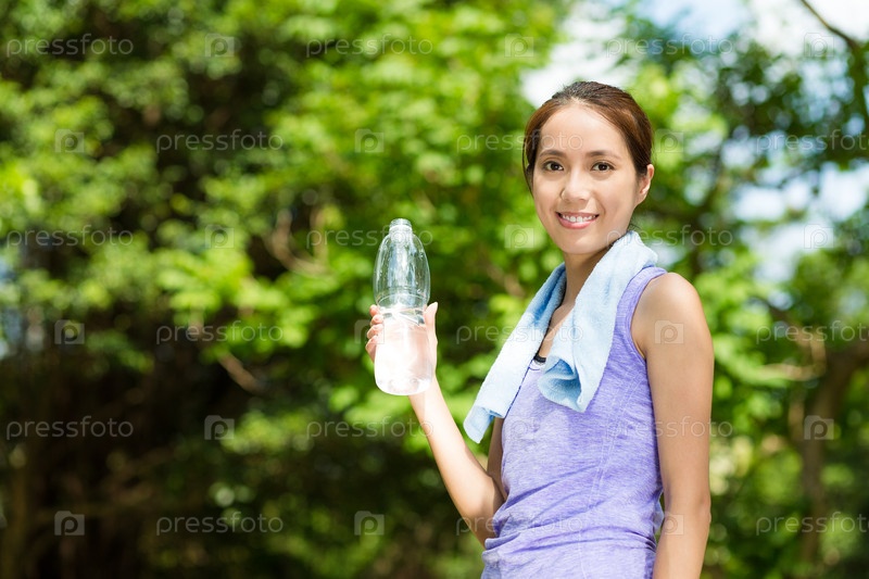 Девушка с бутылкой питьевой воды