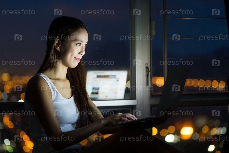 Девушка сидит за ноутбуком