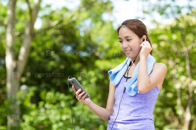 Девушка наслаждается музыкой после занятий спортом