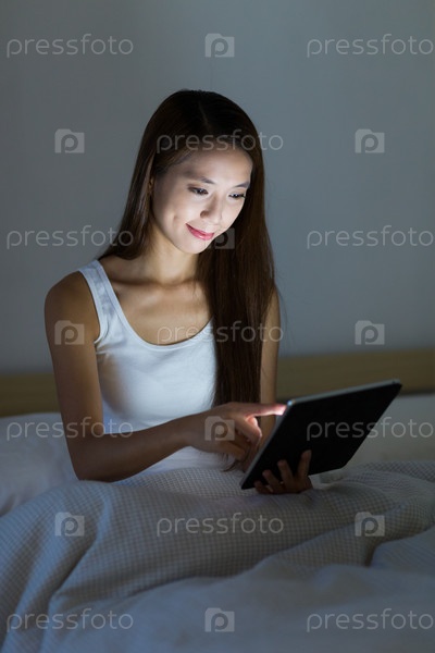Девушка с планшетом в постели
