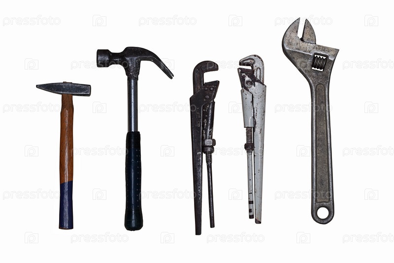 Набор изображений старинных рабочих инструментов