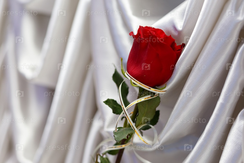 Красная роза на белом шелке