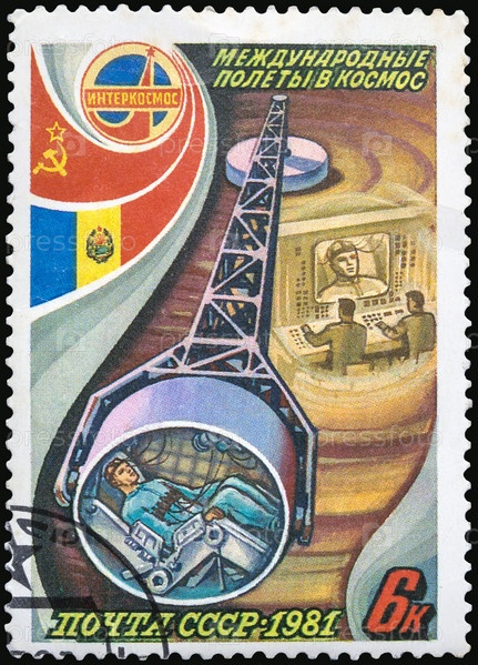 Почтовая марка СССР 1980г. Международные полеты в космос