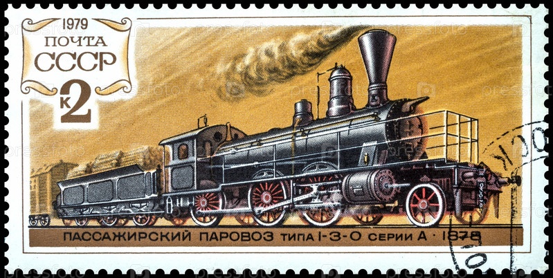 Почтовая марка "Пассажирский паровоз" типа 1-3-0 серии А 1878 год