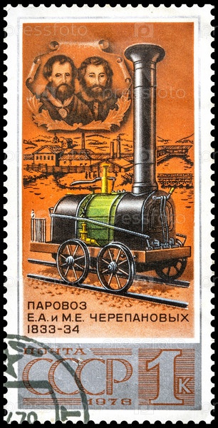 Паровоз отца и сына Черепановых, 1933-1834 года. Почтовая марка Министерства связи СССР