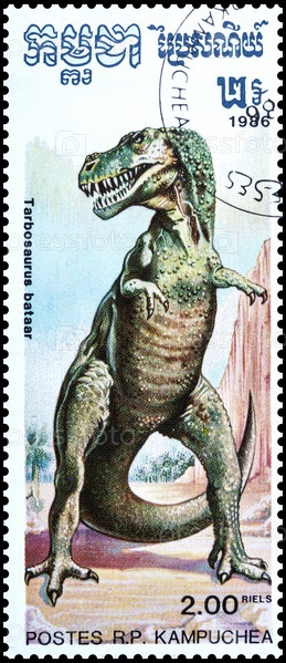 Почтовая марка Кампучии. Динозавры