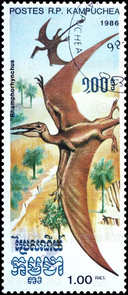 Почтовая марка Кампучии. Динозавры