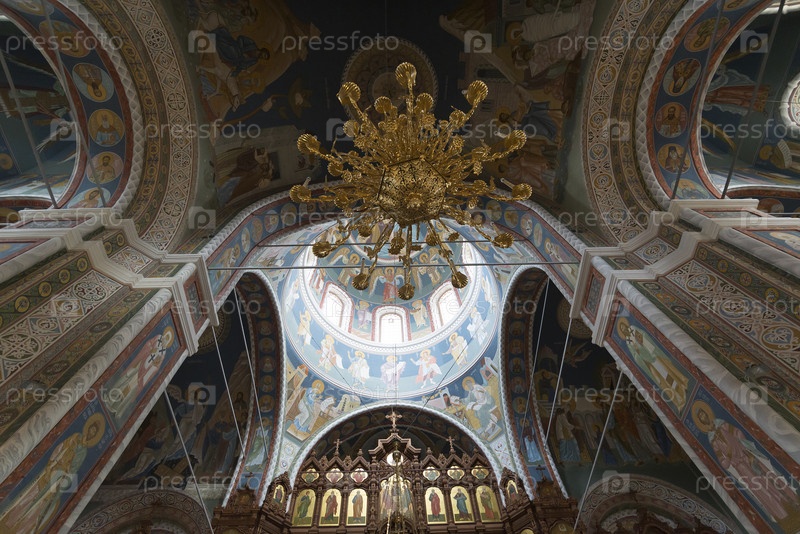 Интерьер с сводчатым потолком собор Святого Александра Невского в Нижнем Новгороде, Россия. XIX век