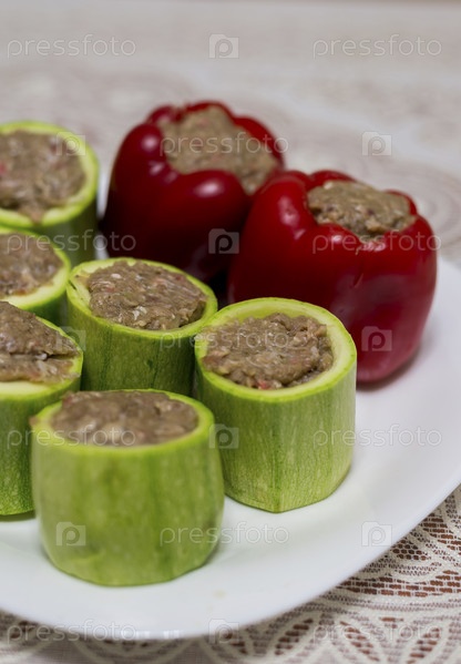 Перец и кабачки, фаршированные мясом