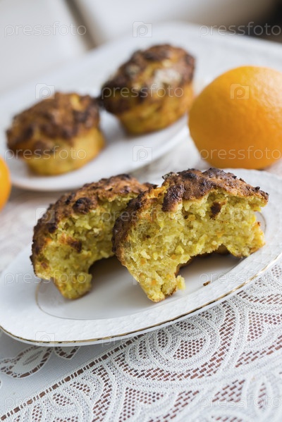 Оранжевый домашний кекс на столе