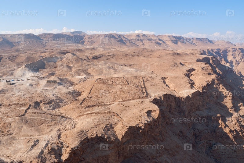 Вид из крепости Масада на остатки римского осадного лагеря