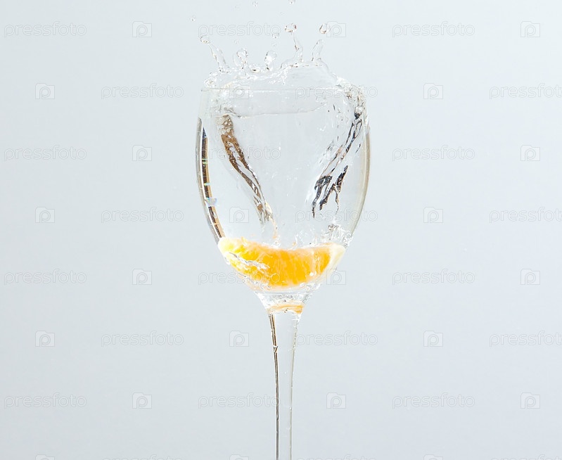 Долька апельсина в бокале воды