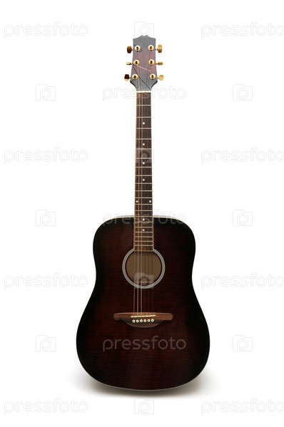 Акустическая гитара, изолирована на белом фоне