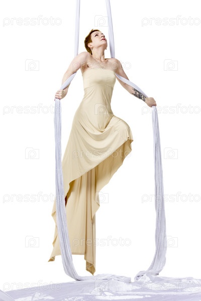 Гимнастка с воздушными полотнами