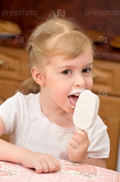 Маленькая девочка кушает мороженое