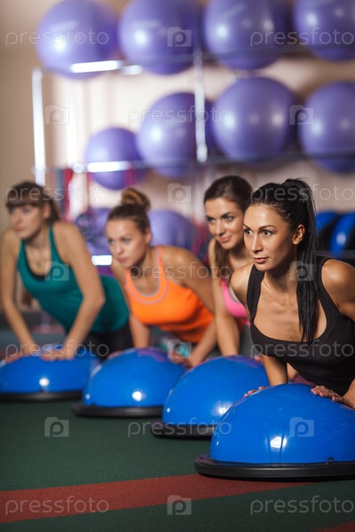 Женщины, балансируя на мяче