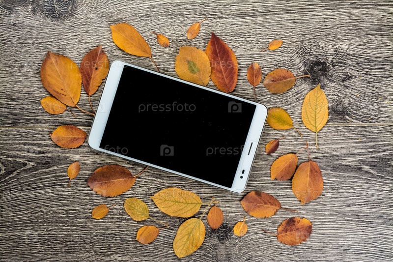 Смартфон и осенние листья