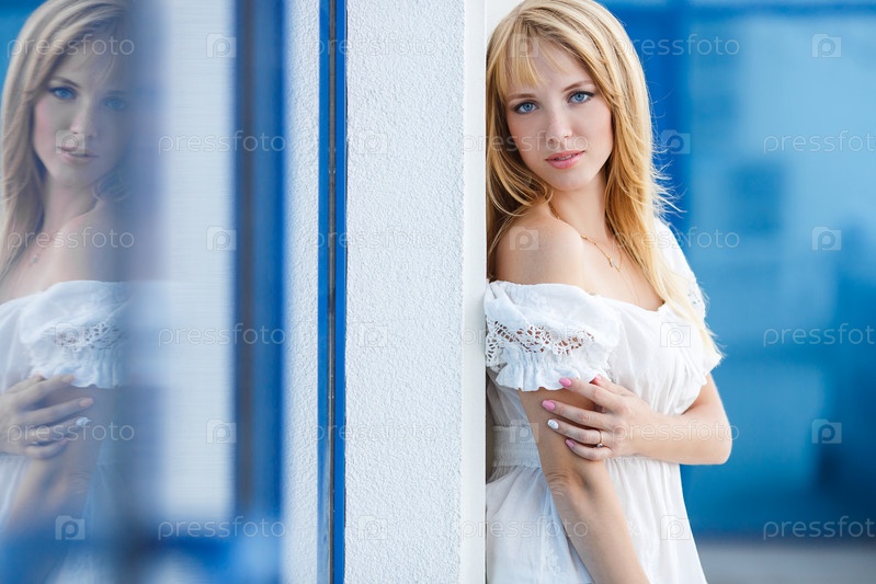 Красивая блондинка в белом