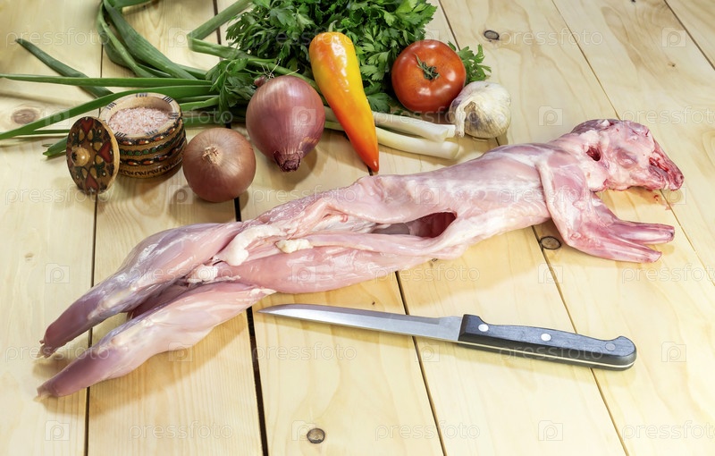 Сырой кролик с овощами