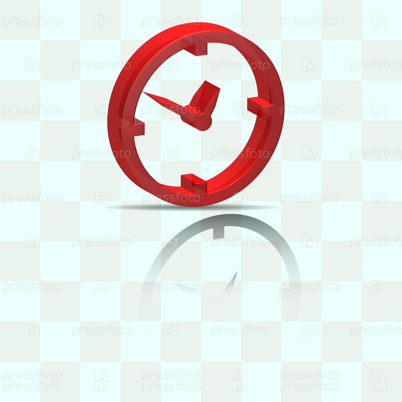 Стеклянная Иконка часов в объемном изображение красного цвета