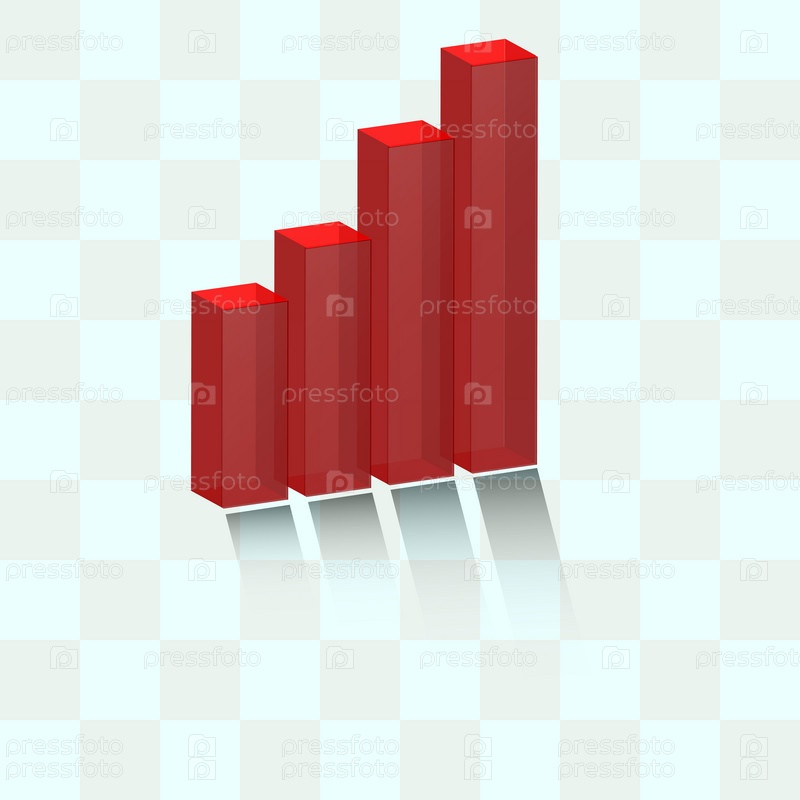 Стеклянная Иконка столбиков в объемном изображение красного цвета