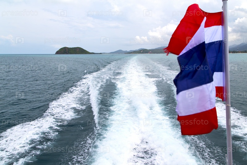 След катера и флаг