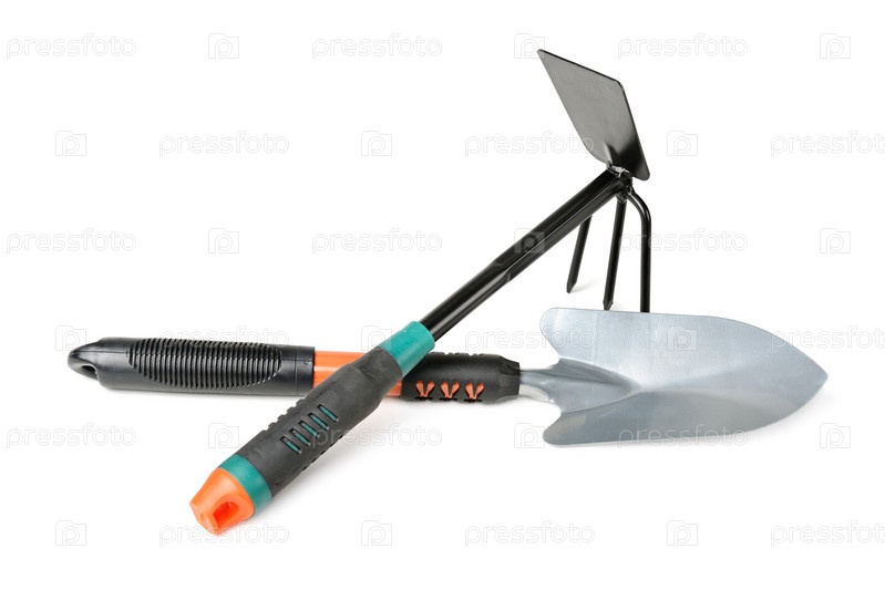 Лопатка и грабли для работы в саду