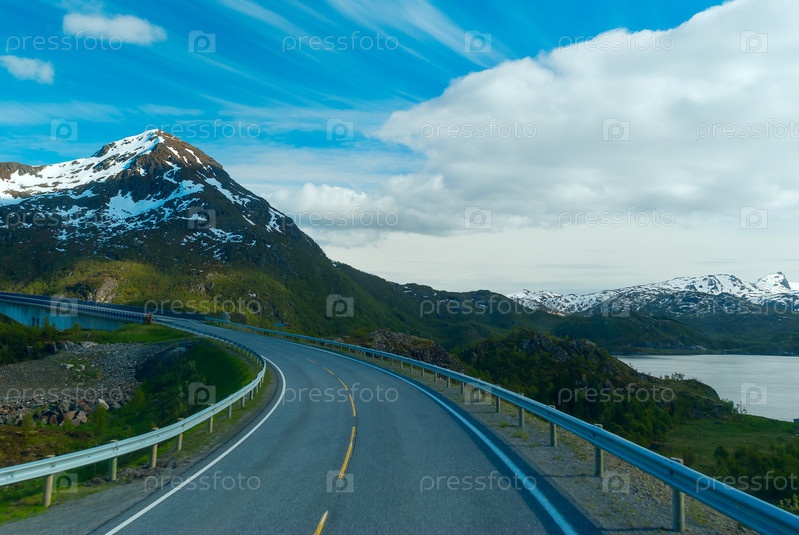 Асфальтовая дорога в горы Норвежский в солнечный летний день